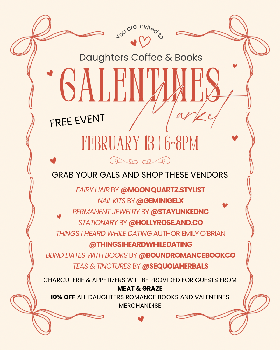 Grab your gals and meet us at Galentines Market at Daughters Coffee & Books.